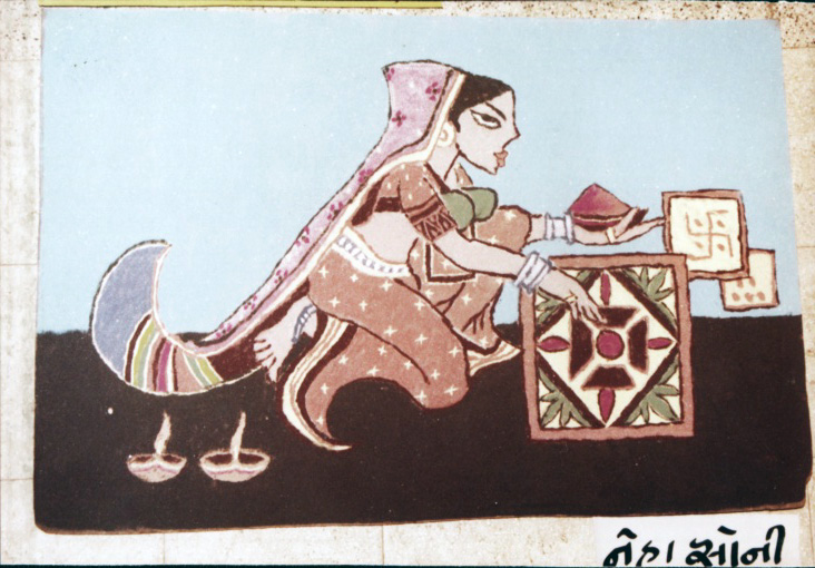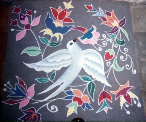 An Indian Art of Powder Painting – ‘Rangoli’ – Mostly done during the Hindu Festival of Diwali in front of main entrance of the house. This work was done for City exhibition and I was the youngest participant at the age of 9 years