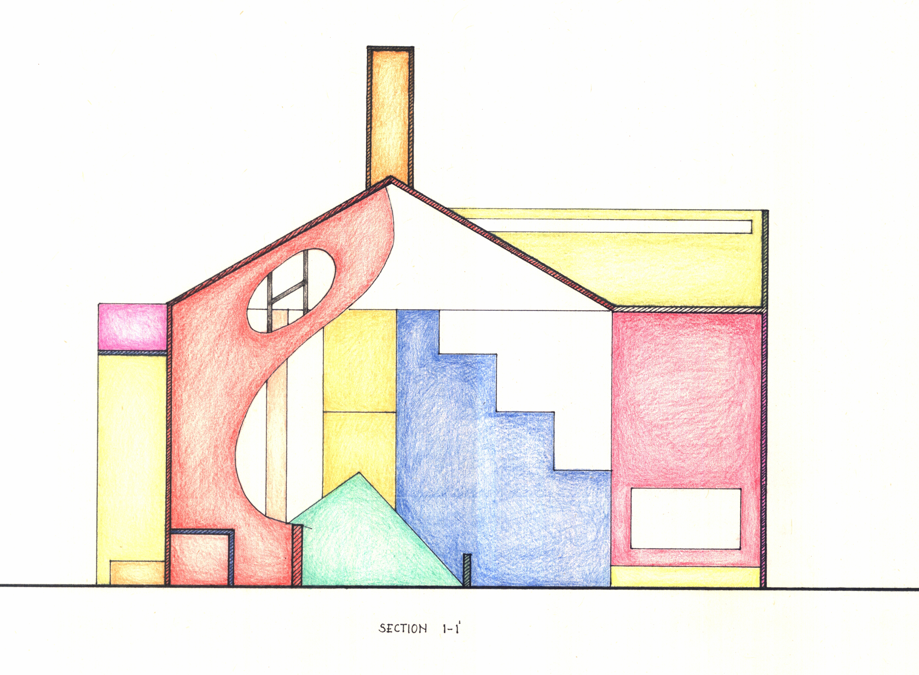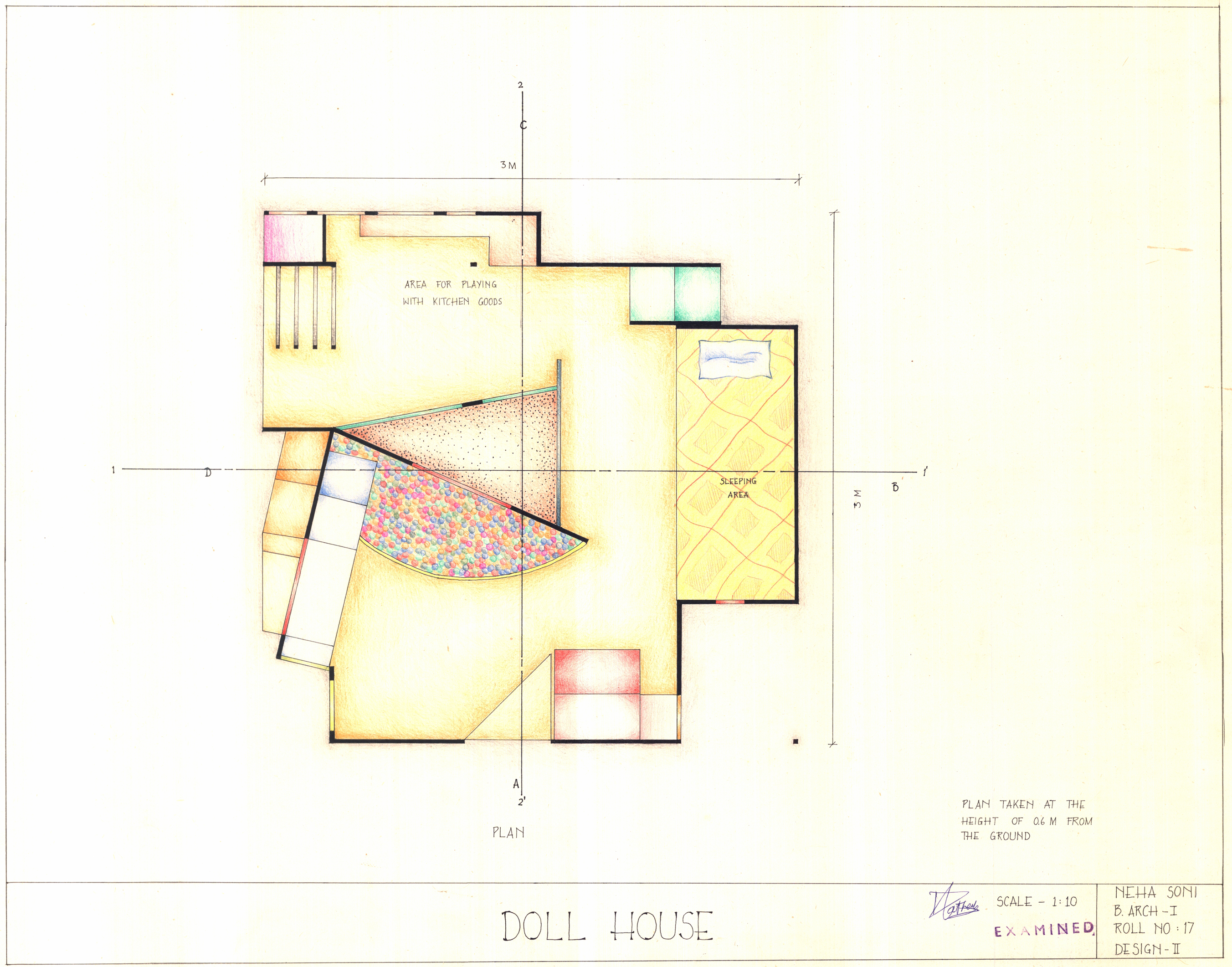 An interesting aspect of this project was to understand the scale of children who would play in this house, climb on it, slide through its roof and maybe sleep inside. It was quite a challenge in the first year of architecture to understand the anthropological scale of children!