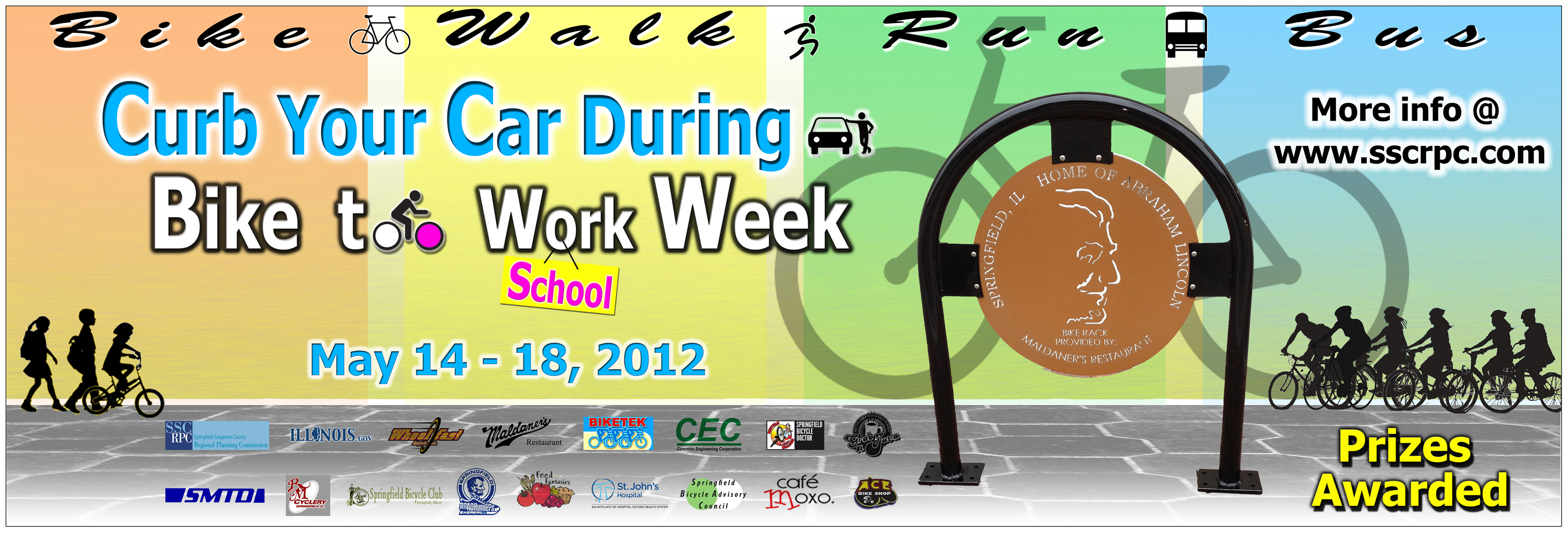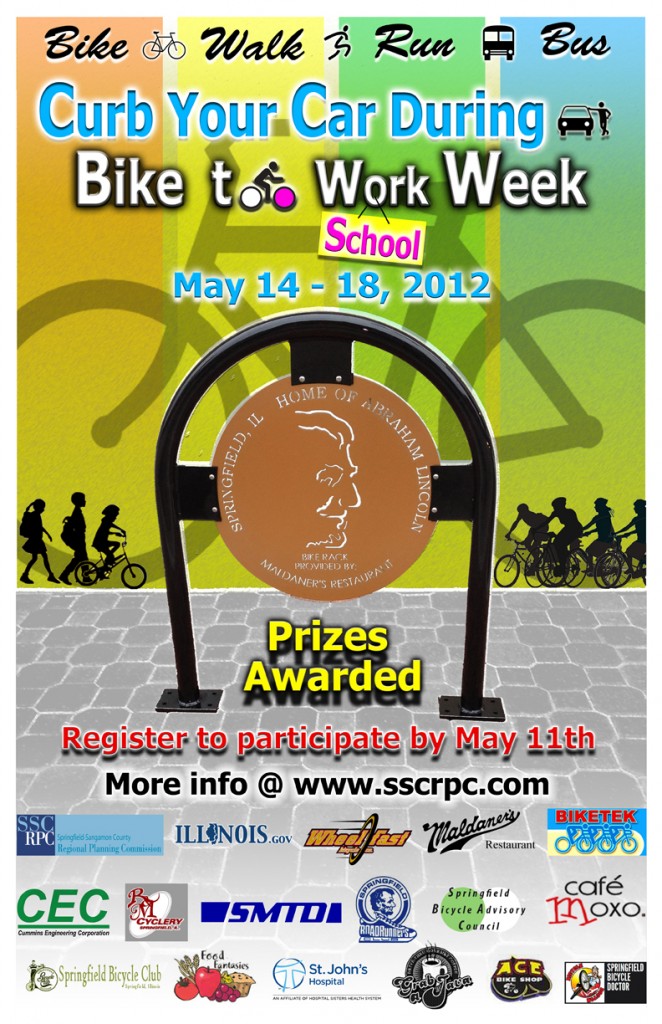 An annual city event to promote biking, walking, and use of public transportation to curb the use of cars. In the year 2012, the City of Springfield installed new Bike Racks in town with an image of Lincoln to create a historic character. The Poster design promoted the use of new Bike Racks throughout the city. For the first time schools participated in the event that started a new trend of biking to schools in the city. The event was also promoted on local public buses.